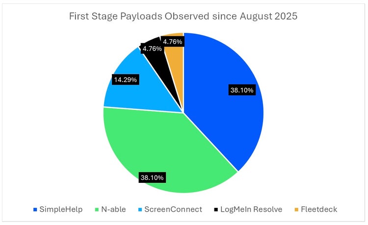Als Ausgangspunkt dienen den Angreifern meist kompromittierte oder gefälschte Accounts auf digitalen Frachtbörsen, mit denen sie vermeintliche Frachtangebote einstellen. Reagiert ein Transportunternehmen darauf, erhält es entsprechend angepasste E-Mails mit Links zu angeblichen Vertrags- oder Frachtinformationen. Das dies eine nicht unübliche Praxis in der Branche ist, sind die Erfolgsaussichten damit ein Opfer zu finden, gut. Hinter den Links verbergen sich Downloads ausführbarer Dateien oder Installationspakete für bekannte Fernwartungs- und Fernzugriffstools (Remote Monitoring and Management, RMM) ScreenConnect, SimpleHelp oder PDQ Connect. Da solche Lösungen in vielen der Opfer-Unternehmen auch von der IT-Abteilung oder Dienstleistern für legitime RMM-Aufgaben eingesetzt werden, sind die Nutzer oft weniger vorsichtig. Zugleich werden damit auch die gängigen digitalen Sicherheitslösungen umgangen, da sie die Kommunikation mit den RMM-Servern als gutartig und sicher einstufen.