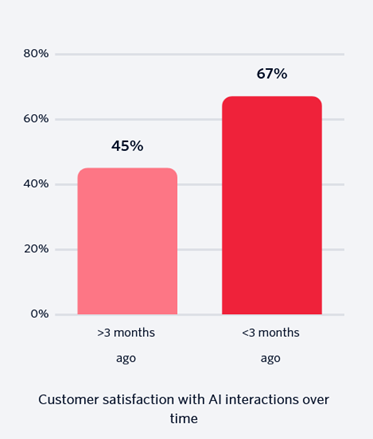 Zugleich erwarten sie sich natürlich Einsparungen, gehen aber auch hier oft mit etwas zu optimistischen Erwartungen zu Werke. 83 Prozent der Unternehmensverantwortlichen zeigen sich überzeugt, dass KI menschliche Agenten ersetzen kann. Auf Seiten der Konsumenten ist es aber 78 Prozent wichtig, bei Bedarf von der KI zu einer menschlichen Servicekraft wechseln zu können. Ein Punkt, an dem es zudem noch weiteren Verbesserungsbedarf gibt. Denn nur 15 Prozent der Nutzer beschreiben die Übergabe zwischen Maschine und Mensch nach ihrer bisherigen Erfahrung als reibungslos.