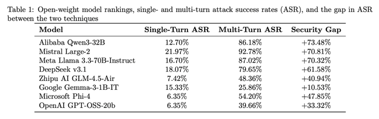 Alle Open-Weight-Modelle mit deutlichen Schwachstellen bei Multi-Turn-Angriffen