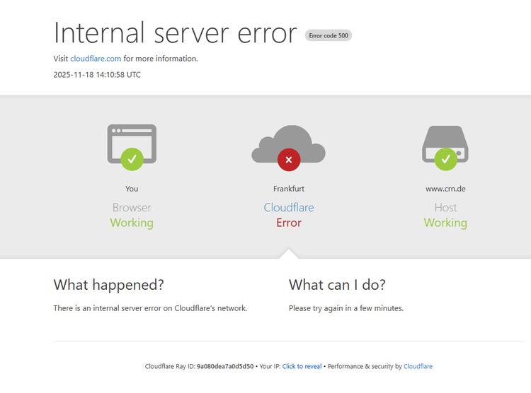 Auch CRN und CRN.de waren am Mittag für einige Zeit nicht erreichbar. In einer Nachricht an The Channel Company, die Muttergesellschaft von CRN, erklärte ein Vertreter von Cloudflare, das Unternehmen habe "einen Fehler in einem zugrunde liegenden Dienst identifiziert, der für die Bot-Abwehr auf unserer Proxy-Engine zuständig ist" und den der Vertreter als "einen kritischen Dienst im gesamten Cloudflare-Netzwerk" bezeichnete. Der Vertreter erklärte, "der latente Fehler habe nach einer Konfigurationsaktualisierung um ca. 12:30 Uhr zum Absturz des Moduls geführt".