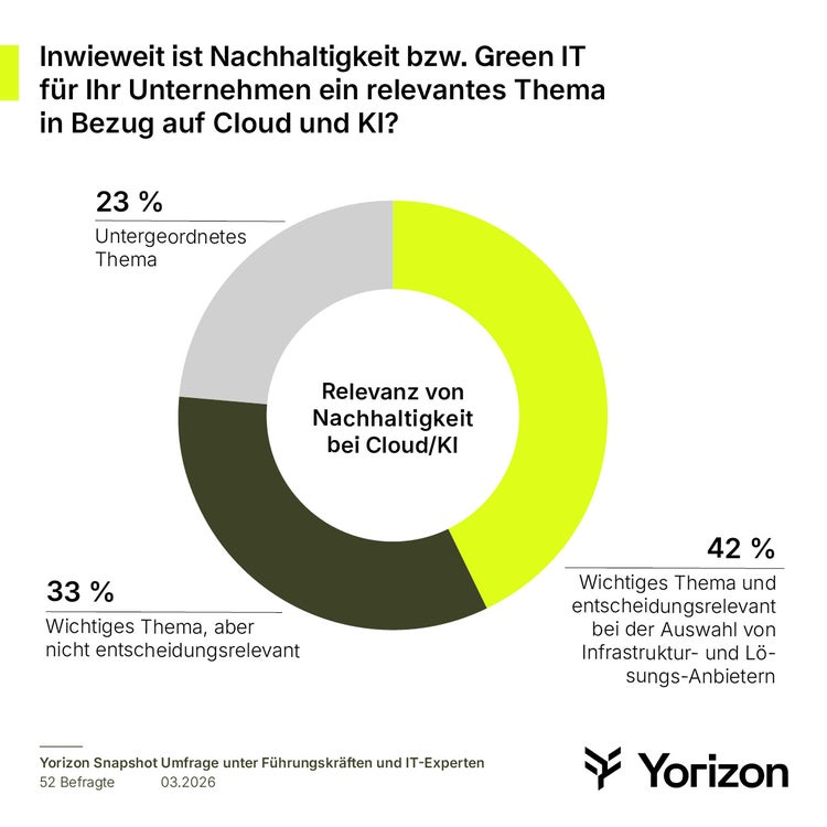 Eine Erkenntnis, die sich in der Umfrage überraschend auch auf ein anderes Thema überträgt: Die Nachhaltigkeit. Zwei Drittel der Befragten geben an, dass auch Nachhaltigkeit beziehungsweise Green IT für ihr Unternehmen in Bezug auf Cloud und KI wichtig sind. Mehr als 40 Prozent sehen darin sogar einen relevanten Faktor bei der Entscheidung für Infrastruktur- und Lösungsanbieter. "Ein nachhaltiger Energie- und Ressourceneinsatz ist wesentlich für unabhängige und resiliente IT", so Hofstetter. "Immer mehr Entscheider erkennen und nutzen die Chance, den Neuaufbau souveräner IT-Umgebungen auch hinsichtlich Nachhaltigkeit von vornherein zukunftsfähig zu gestalten."