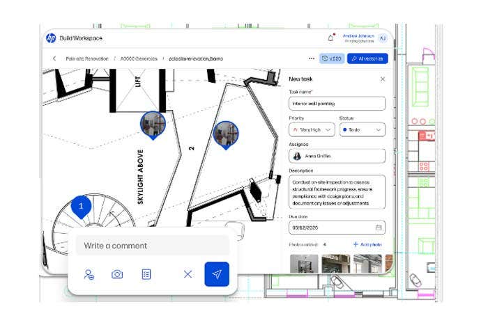 - Intelligente Digitalisierung: Die Möglichkeit, Informationen leichter in die digitale Welt zu bringen. Juarez erklärte, dass HP bereits gescannte Zeichnungen editierbar macht. "Später in diesem Jahr ermöglichen wir nicht nur die Vektorisierung der Zeichnung zur Bearbeitung, sondern auch das Extrahieren von Erkenntnissen daraus, etwa das Zählen von Objekten. Dadurch werden sie durchsuchbar und liefern relevante Informationen für die Entscheidungsfindung von Bauteams."
